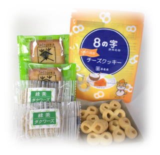 ~冬のお茶うけにどうぞ~ 春のお楽しみセット 静岡生まれの銘菓「8の字」のチーズバージョ ンに、変わらぬ人気の「お茶フリアン」、そして 定番の「緑茶ダクワーズ」をセットにしました。 ・春のお楽しみセット 972円 ・お茶フリアン2個 ・緑茶ダクワーズ2個 ・8の字チーズクッキー1袋 |