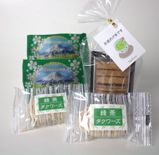 静岡発 慌ただしい日々の中に 『冬のお楽しみセット』 不思議なおいしさ「ブラウンクッキー」に 抹茶ミルク餡のやさしい甘さの「世界ふじ」、そして 定番の人気菓子「緑茶ダクワーズ」をセットにした 人気3点セットです。 |
